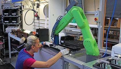 Fanuc Robotics, hemos desarrollado para la Stahfolder la 'P-Stacker'. Con este dispositivo, eliminamos los trabajos más duros a través de un potente brazo robótico controlado con una interface muy sencilla