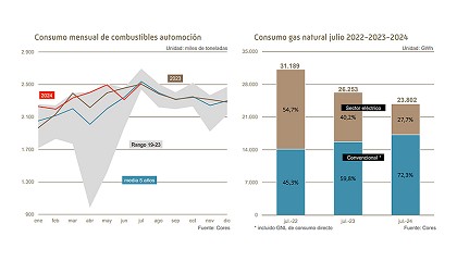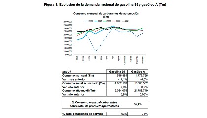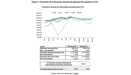 GLP (1,5%), querosenos (11,4%), y fuelóleos (4,8%). Los datos acumulados anuales continúan siendo positivos, con incrementos en todos los grupos de productos, destacándose el aumento del 12,8% en querosenos