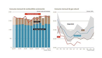 GLP (10%), querosenos (8,4%), gasóleos (6,2%) y fuelóleos (2,3%). En agosto de 2024, tras el incremento del mes anterior, el promedio mensual de la cotización internacional de referencia