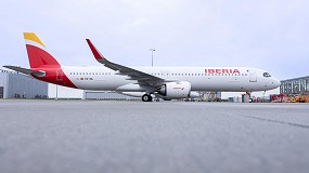 Iberia”. El nuevo Airbus A321XLR de Iberia se prepara para su ‘ferry flight’ a Madrid. #Iberia #Airbus #A321XLR El A321XLR recién entregado a Iberia tiene capacidad para 182 pasajeros en una distribución