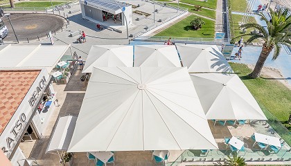 Alcudia, en Mallorca, playa que compite para ser considerada una de las diez mejores de España. El objetivo de este proyecto es cubrir una terraza de unos 2.000 m² con diferentes