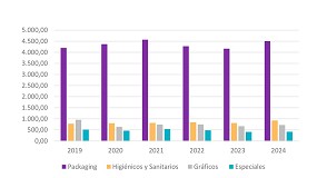 Artes Gráficos es el que mayor número de insolvencias reporta. Evolución del papel por subgrupo de actividad entre 2021 y 2024. Fuente: elaboración propia Solunion. Perspectivas del sector En España