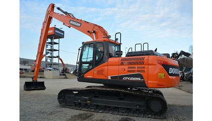 balancín, de 6 toneladas. Con una pluma de 8,5 m y un balancín de 6,2 m, la nueva excavadora DX225SLR-5 es una máquina muy versátil. Con un peso