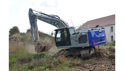 balancín para mayor alcance. También se han desarrollado una gran cantidad de accesorios nuevos para la excavadora, que incluyen un cucharón y un tenedor, acopladores rápidos mecánicos / hidráulicos, cucharones estándar