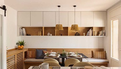 barandilla a juego. Salón amueblado. Cocina independiente con zona de comedor La intervención en la cocina ha sido mínima. Destacan los detalles en tono mostaza sobre una base negra ya existente