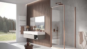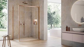 bisagras y otros componentes estructurales se convierten en elegantes detalles decorativos gracias a los nuevos y brillantes acabados metálicos cobre perla, latón perla y negro perla. Las mamparas de ducha