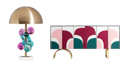 coral, el sofá Suhl se ha convertido en una de las piezas más características de la temporada. A la izquierda la lámpara de sobremesa Inch y a la derecha el buffet