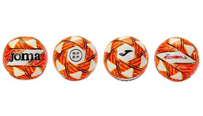 coral y amarillo e incluye detalles en negro y triángulos blancos . Sin embargo, al rodar el balón, el blanco y el negro desaparecen y el resto se fusiona en un rojo