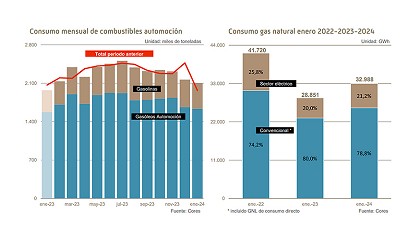 Cores) publicó su avance provisional relativo al mes de enero de 2024 El consumo de combustibles de automoción ascendió un 6,9% en el primer mes de 2024 Según el avance