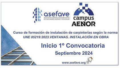 curso de formación sobre instalación de ventanas en obra - 16/07/2024: Asefave organiza un curso de formación sobre instalación de ventanas en obra La Asociación Española de Fabricantes de Fachadas Ligeras