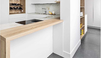 dorados: Elegancia moderna El mármol sigue siendo un elemento clave para aportar elegancia y exclusividad a la cocina. Los acabados de porcelana en este tipo de material y la grifería