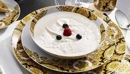 dorado, que se une al moderno concepto de vajilla de Rosenthal. El estampado Barocco de Versace fue diseñado como una celebración de la creatividad, la libertad de expresión y la magia