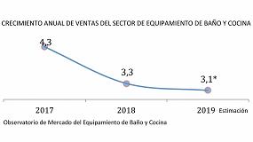 fregaderos, mamparas, platos de ducha y complementos (herrajes, tiradores, accesorios…,) registraron un crecimiento ponderado del 3,1 por ciento como previsión para el cierre de ejercicio 2019, según refleja el Observatorio