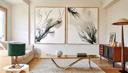 gres esmaltado en tres acabados diferentes: oro de 24 quilates, platino y un engobe beige. Un dormitorio entre África y el Mediterráneo Lejos de la opulencia, el dormitorio es un refugio