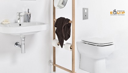 inodoros, bidés, urinarios, lavabos, elementos especiales para baños sin barreras e inodoros con ducha. El sistema ‘todo en uno’ permite un ahorro tanto en costes como en el proceso e instalación