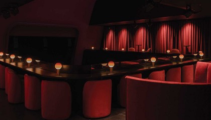 luminarias en suspensión. Foto: Diego Peléz. El estudio Ilmiodesign ha diseñado el interior del restaurante Boccaccio70, el nuevo proyecto del chef Ricardo Temiño, reconocido con su primera Estrella Michelin en 2024 por La Fábrica