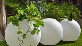 maceteros Llum por Studio VONDOM, Fiesta por Archirivolto Design y Moma por Javier Mariscal. Todas estas colecciones son de la compañía española VONDOM, transmitiendo un estilo de vida mediterráneo magnífico