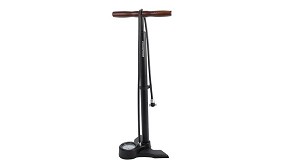 Maneta fabricada en madera con logo serígrafiado en laser. Cuerpo de aluminio y base de gran superficie. Manómetro sellado de fácil lectura. Doble válvuila Presta/Schrader. Incluye soporte para cuadro. Presión