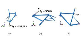 pedalier. Test de rigidez a torsión ante una carga transversal aplicada en el tubo de dirección: se busca el giro mínimo de la estructura ante una torsión pura del tubo