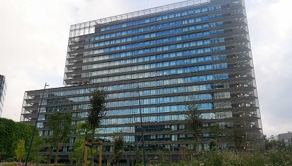 porche que se abre a un parque. La planta 1 a la 8 ocupan toda la longitud del edificio y tienen la misma configuración. Son plantas diáfanas, con un núcleo