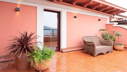 roble y cuero natural hasta tonos de marfil y el suelo de parqué de roble, encarnando los conceptos característicos de elegancia y diseño de Custom Line. Los enormes espacios, con alturas