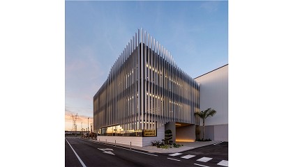 roble natural y lacados en grises neutros (RAL 7030 y 7016). La línea visual se mantiene a 2,30 metros en todo el edificio: puertas (en su mayoría escamoteadas), ventanas