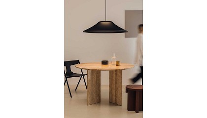 suspensión de formas puras y esenciales, concebida por el dúo de diseñadores germano-luxemburgués Geckeler Michels. Warp emerge desde una circunferencia del plano horizontal y toma forma con auténtica fluidez