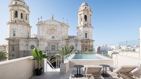 tapizadas y con el suelo de terrazo gris integrado, para fundir este espacio con el resto de la estancia. Resalta dentro de él dos sistemas de ducha empotrados con rociadores