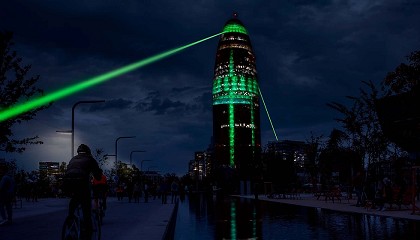 telas translúcidas que convierte al visitante en parte del paisaje sensorial. Escola Massana – Irradiància (Av. Diagonal 178): estructura autosuficiente que transforma luz natural en espectro lumínico LED. UOC – Rebrot (Sant