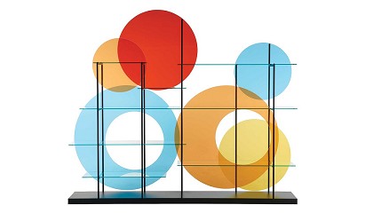 tonos cálidos (rojos y naranjas) o tonos fríos (azules y verdes). Bajo la luz, los discos proyectan delicados reflejos de color sobre la pared o el suelo, creando una atmósfera