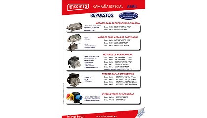 marcha su campaña donde suministra recambios totalmente compatibles con todas las marcas, desde motores para tronzadoras de madera hasta motores para mesas de corte-agua o interruptores de seguridad, entre otros.