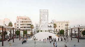 Wood ha construido la estructura del pabellón, con madera proveniente de las propias bateas, acompañada de una cubierta realizada con redes de pesca por la diseñadora gallega Amalia Puga junto