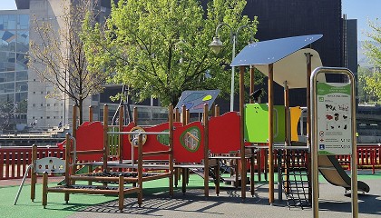 Estrada Masustegui, ha contado con un presupuesto de 85.872 euros. La configuración de dicha plaza, a dos niveles conectados por una escalinata central, ha permitido diseñar dos zonas diferenciadas: una —la de abajo