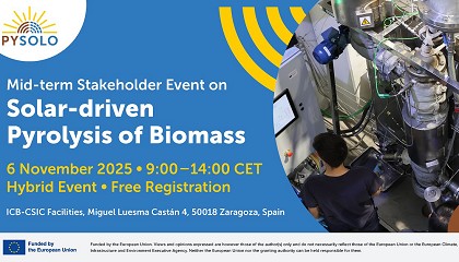 biomasa impulsada por energía solar: avances del proyecto PYSOLO - 29/09/2025: Innovación en bioenergía y desfosilización industrial Pirólisis de biomasa impulsada por energía solar: avances del proyecto PYSOLO El proyecto PYSOLO