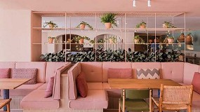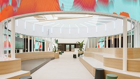 biombos separadores y la estructura cajeada con una persiana impresa en el frontal que oculta las máquinas de vending. La iluminación es una parte esencial de un proyecto de interiorismo