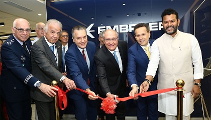 Bosco da Costa, presidente y director ejecutivo de Embraer y Kinjarapu Ram Mohan Naidu, ministro de Aviación Civil de la India. La nueva oficina servirá como centro neurálgico de las operaciones