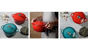 Inspirada en diseños de archivo y reinventada para las cocinas de hoy, esta colección destaca por sus líneas suaves, asas más abiertas y una tapa renovada con pomo de acero inoxidable.