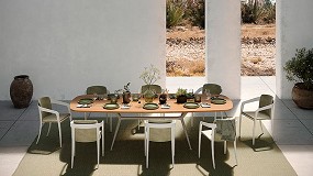 pufs acolchados y modulares que traslada el concepto de sofá de interior al uso en exteriores y permite configurar múltiples escenarios. Otra novedad, ya presentada en el Salone del Mobile