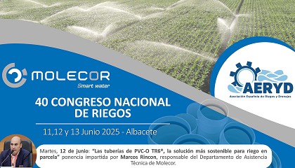 riego TR6® en el 40º Congreso Nacional de Riegos - 03/06/2025: Molecor presentará su tubería de PVC Orientado para riego TR6® en el 40º Congreso Nacional de Riegos Del 11 al 13 de junio