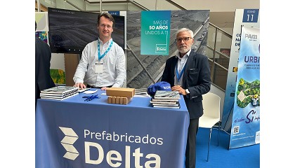 Riegos - 30/06/2025: Prefabricados Delta exhibe sus tuberías de presión para gran diámetro en el Congreso Nacional de Riegos Elio Sancho A la izquierda, Juan Pablo Guerrero, director comercial de Prefabricados