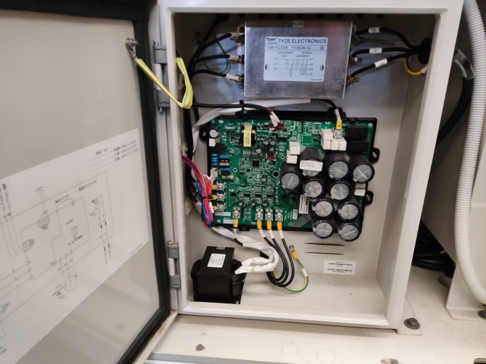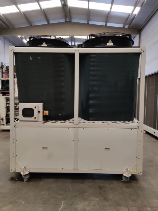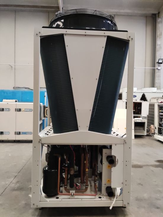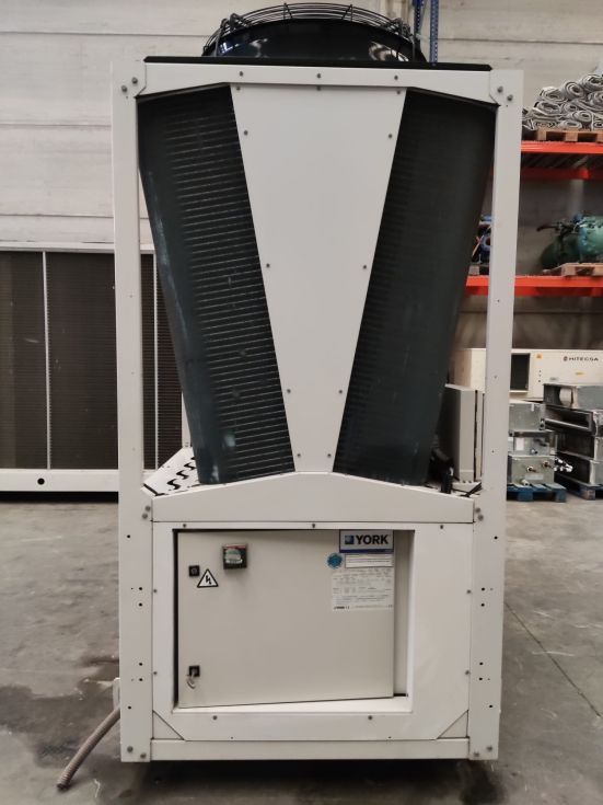 Enfriadora de agua de ocasion, marca York, de 78kw con bomba de calor, Chillar modelo:YMPA==(=PE50, año 2018, 380III, gas R-410A, con 3 compresores, 1 intgercambiador de placas  y 2 ventiladores axiales, Peso 879 Kilos, tuberia agua de 21/2".