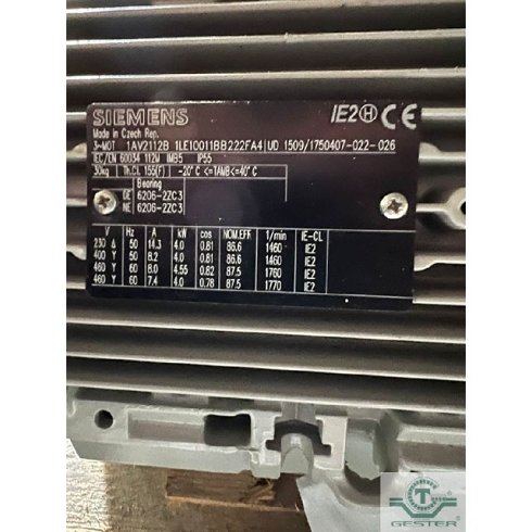 | Detalles | Motor brida nuevo: 4 KW (5.5 CV), marca Siemens a 1500 rpm. |
