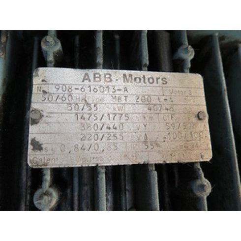 | Detalles | Motor marca: ABB, 2 velocidades, de una inyectora, marca: Mateu i Sole, potencia: 200 Tn, 30-/35 Kw, 1475/1775, con bomba hidraulica. |