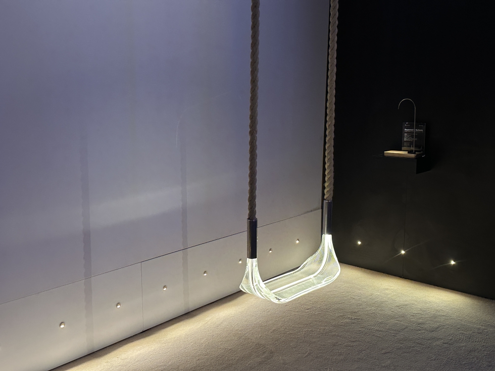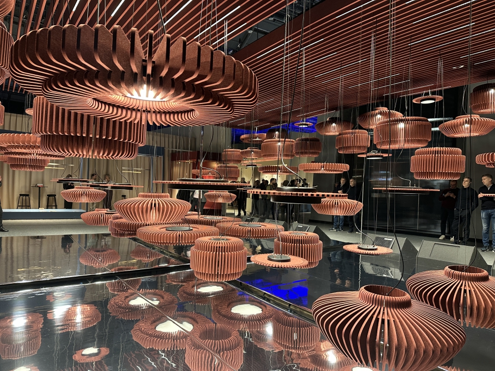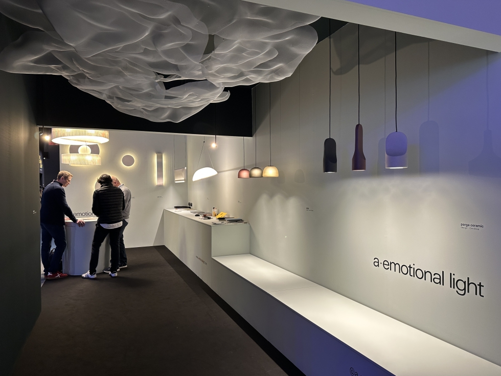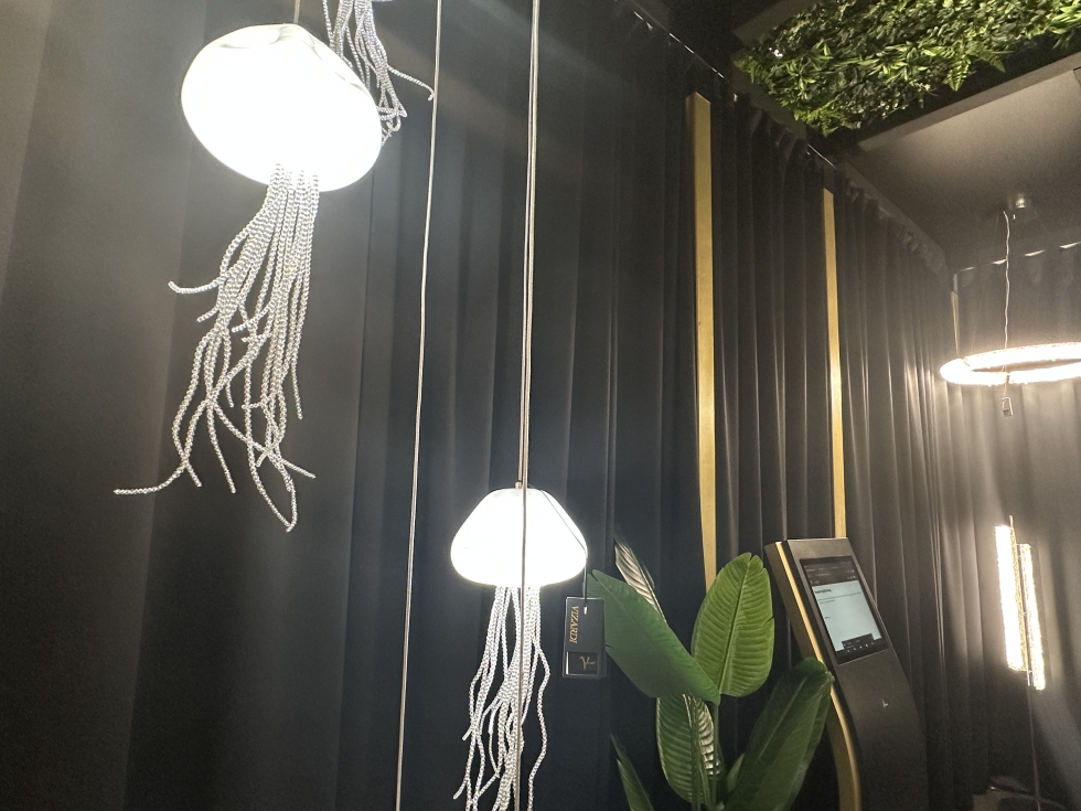 Otro de los ejemplos estaba en Kerai, firma española que apuesta por la tecnología 1001K, cuya iluminación se aproxima más al nivel de calidez que se requiere. Para ello, en su stand se disputo de una instalación inmersiva diseñada por la lighting designer Sophya Acosta.