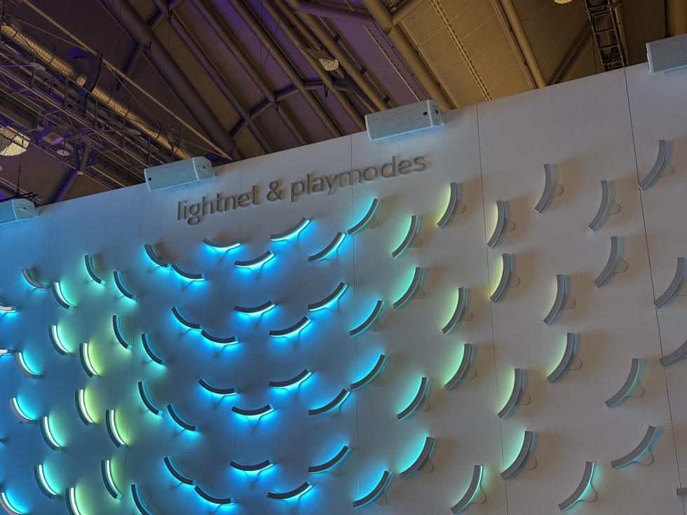 Por otro lado, el efecto wow fue una constante en los stands de la feria. Uno de los más populares fue el de Lightnet que ha confiado en el estudio español Playmodes para crear unas composiciones cinéticas donde luz y sonido conseguían crear una interesante envolvente más próxima al ‘light art’.