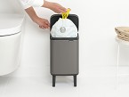 Brabantia ha creado también las bolsas PerfectFit con cinta de cierre para estos cubos de basura Bo y Bo Hi. Estas resistentes y elegantes bolsas hacen que vaciar el cubo de basura sea un trabajo sencillo y se pueda hacer con una sola mano. Se incluye un paquete de muestra gratuito de estas a juego de encaje perfecto en cada cubo.