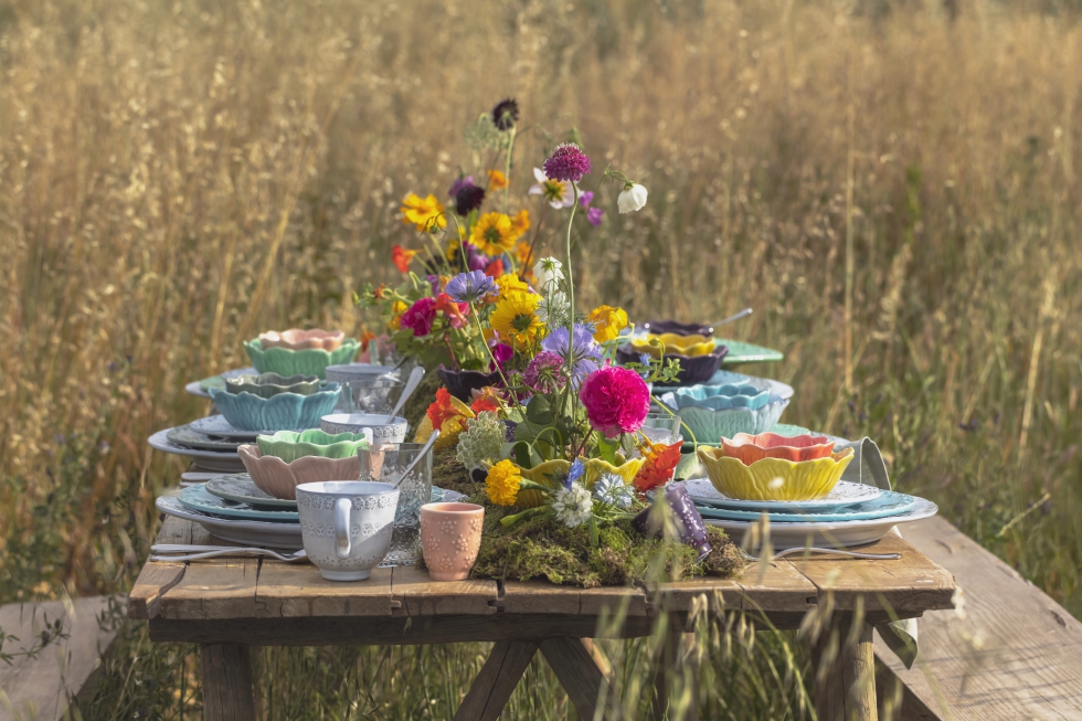 Desenfadada y actual, la nueva colección Flora de Bordallo Pinheiro reúne un herbario de plantas y flores alrededor de las que afanan pequeños y graciosos insectos. A la colección conformada por 25 piezas diferentes, se han agregado fuentes, platos de presentación, platos llanos, platos de postre, jarras, tazones, ensaladeras y tazas de café y té. La colección aporta toques muy únicos a cualquier mesa y proyecta la calma, ideal para cualquier tarde de primavera o verano. Las cualidades que definen a Flora se intensifican con ocho suaves colores campestres que hacen el juego perfecto.
