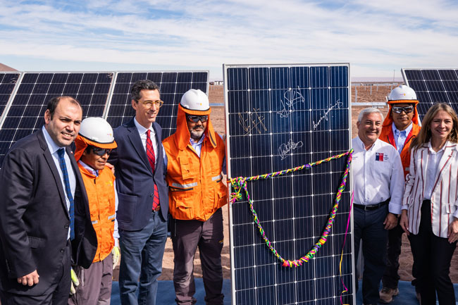 Solarpack celebró el pasado día 22 de mayo, junto con KfW IPEX-Bank, la ceremonia de instalación de la primera serie de módulos del proyecto Granja Solar en Chile. Además del consejero delegado de Solarpack, Pablo Burgos, y representantes de KfW, ha acudido al evento la Ministra de Energía, Susana Jiménez Schuster, y el Subsecretario de Economía, Ignacio Guerrero Toro. Igualmente han estado presentes Enrique Ojeda, embajador de España, el intendente de la región de Tarapacá, Miguel Angel Quezada, la SEREMI de Energía, Ximena Cancino Cepeda, el SEREMI de Minería, Gonzalo Vidal Salinas, y el SEREMI de Economía, Alfredo Figueroa Sotelo, junto con otras autoridades, empresarios, colaboradores y personalidades.