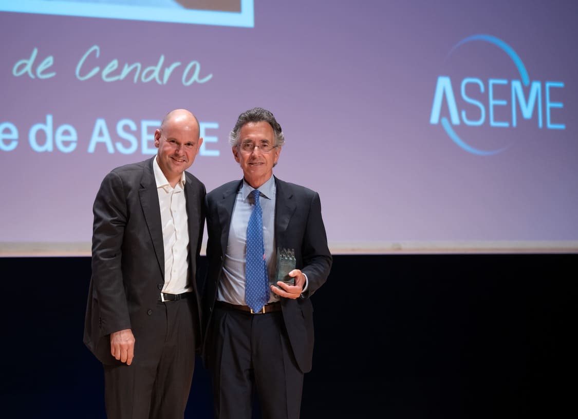 Uno de los momentos más emotivos del acto fue la entrega del galardón ”1 Kw de oro” con el que se reconoce el trabajo de personas que han colaborado en la entidad y cuyo trabajo han supuesto una importante aportación para ASEME. El reconocimiento de este año fue a título póstumo al que fue el primer presidente de la entidad, Tomàs Feliu de Cendra. El presidente actual de la entidad, Oriol Xalabarder, fue el encargado de entregar el premio al hijo del homenajeado, Tomàs Feliu Bassols, que recogió el premio y recordó el trabajo de su padre y su gran legado al sector.