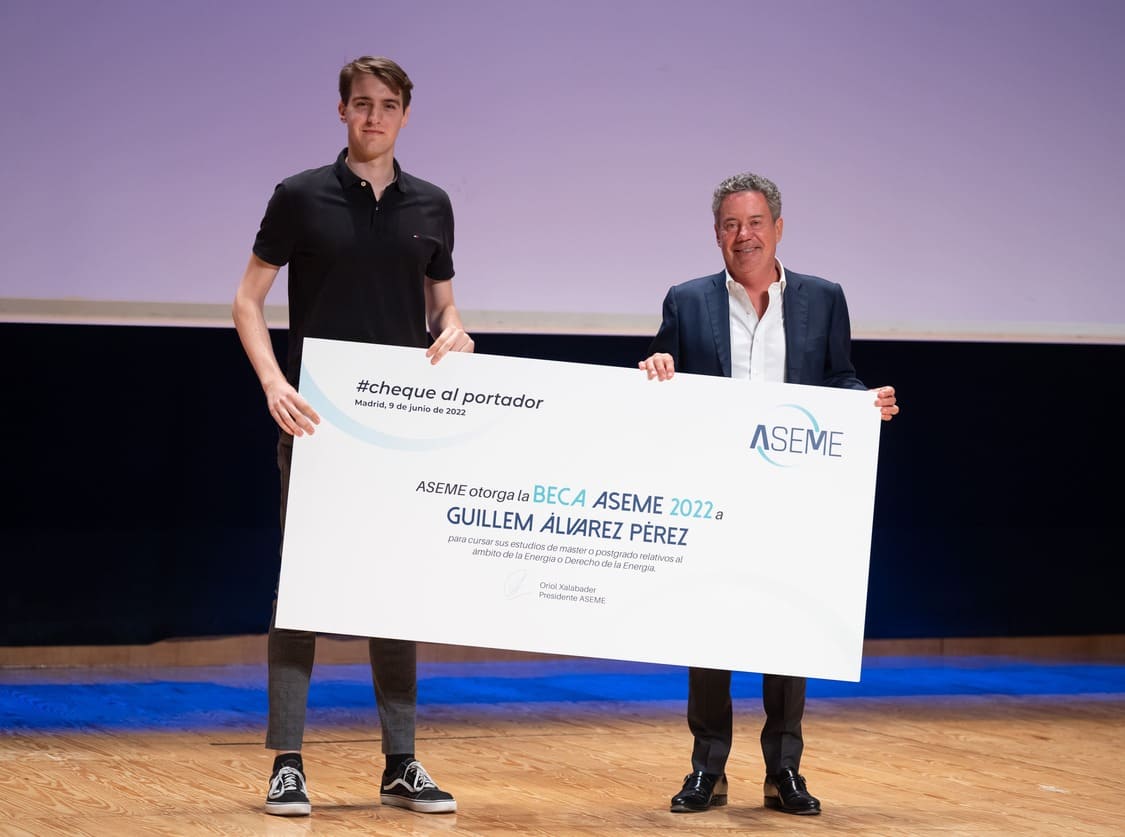 Durante el acto, la entidad hizo entrega al estudiante afortunado de este año de la beca que la entidad otorga des de hace tres años para estudios de máster y postgrado y que por primera vez pudo entregar de manera presencial. Se trata de una ayuda para estudios de máster y postgrado del ámbito de la energía o derecho de la energía, por un importe máximo de 10.000 euros. El afortunado de este año es de Cambrils (Tarragona), se llama Guillem Álvarez Pérez y la beca será para realizar el Máster’s in Renewable Energy by InnoEnergy. Álvarez agradeció la beca y dijo que sería un placer, en un futuro, compartir trabajo con alguno de los profesionales de la entidad.